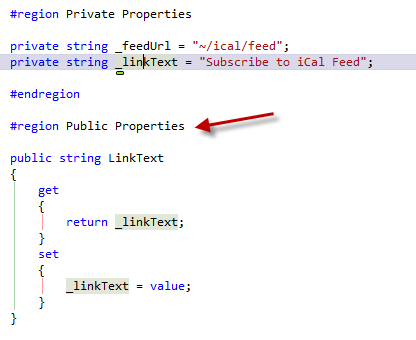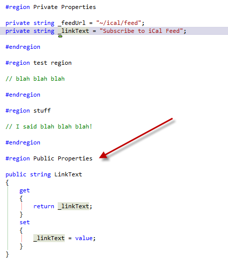 I needed to add a property to a class, and my coding style puts private properties and their public accessors in separate #regions. I added the private member to the "Private Properties" region, and decided to let Just Code stub it out for me, expecting it to generate the public property directly beneath my private variable. I figured I would just copy and paste it into the appropriate region.