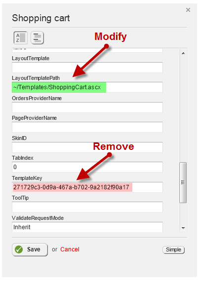 Fortunately, the shopping cart template also includes a validation control for each item. By mapping this control to an external User Control template as well, we can tap into this validator with custom code just as we did before.