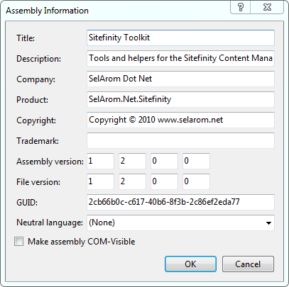 Be sure to make sure all of the Assembly properties match your projects. Although they target different platforms, the project itself is usually a single product, so take some time to sync everything up: