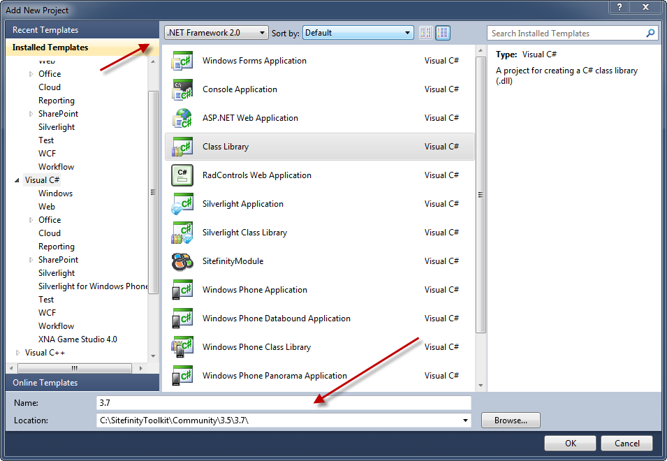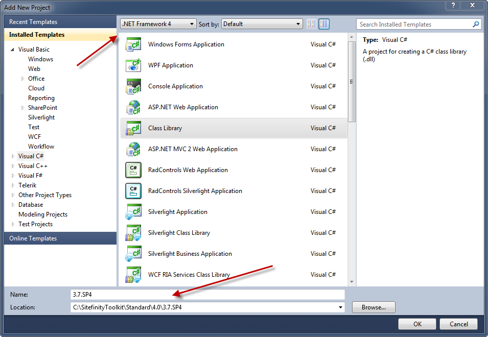 In the dialog that follows, setup your project to match the platform (in this case ASP.NET 4.0). Be sure to name it in a way that identifies your project. Previously I used the full version number (i.e. 3.7.1990.2) but this ended up being more confusing that I thought and ended up labeling it with the version and Service Pack number.