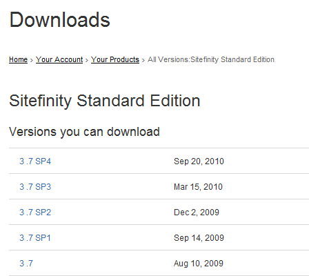 Obviously the first thing you'll need to get started is a copy of all the Sitefinity DLL files for each of the projects you wish to reference. These are available in your Sitefinity Client account. Go into your downloads and you should immediately see the latest version (SP4) as of this writing.